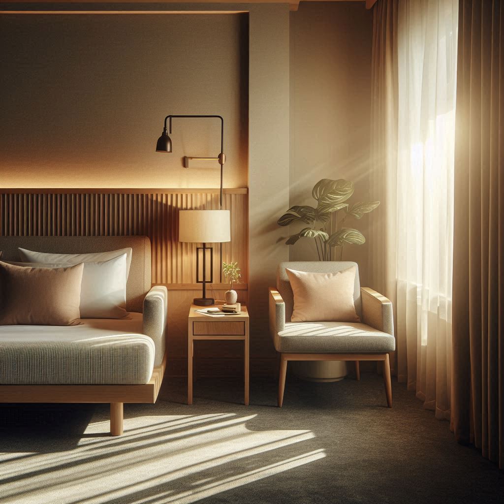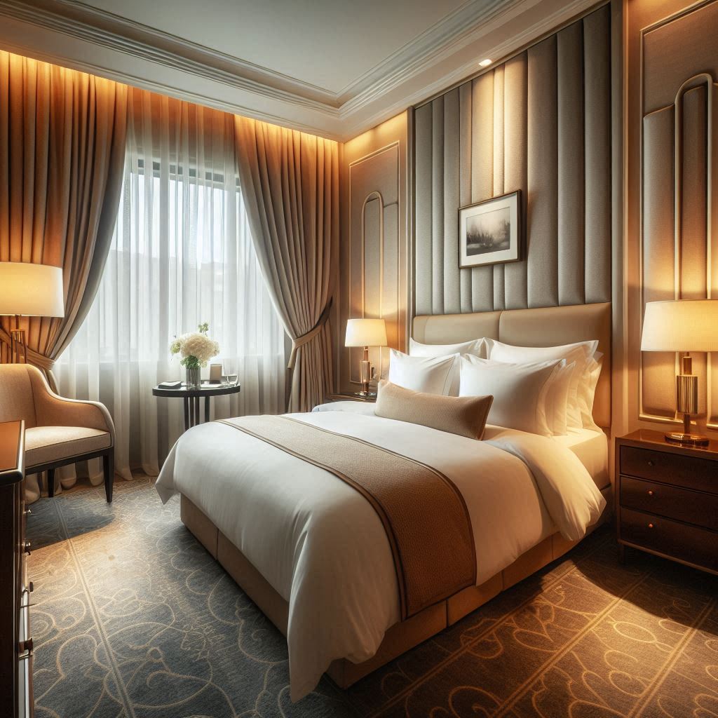 복도는 밝기 차이가 적은 조명으로 구성되어 있어 객실로 이동하는 동안 눈이 피곤해지지 않았습니다. 방 문을 열자 은은한 톤의 벽지와 낮게 번지는 간접등이 먼저 들어왔고, 실내 온도는 외부보다 약간 시원하게 유지되어 금방 긴장이 풀렸습니다. 침구는 모서리 라인이 반듯하게 잡혀 있었고, 베개는 흔들림이 적어 누웠을 때 목이 크게 꺾이지 않았습니다. 책상 위에는 리모컨, 객실 안내지, 음료 등이 한쪽으로 정돈되어 있어 동선이 흐트러지지 않았습니다. 창가 커튼은 차광이 잘 되어 있어 저녁 햇빛이 실내로 너무 세게 들어오지 않았습니다. 전체적으로 정돈된 구성이라 빠르게 적응할 수 있었습니다.
