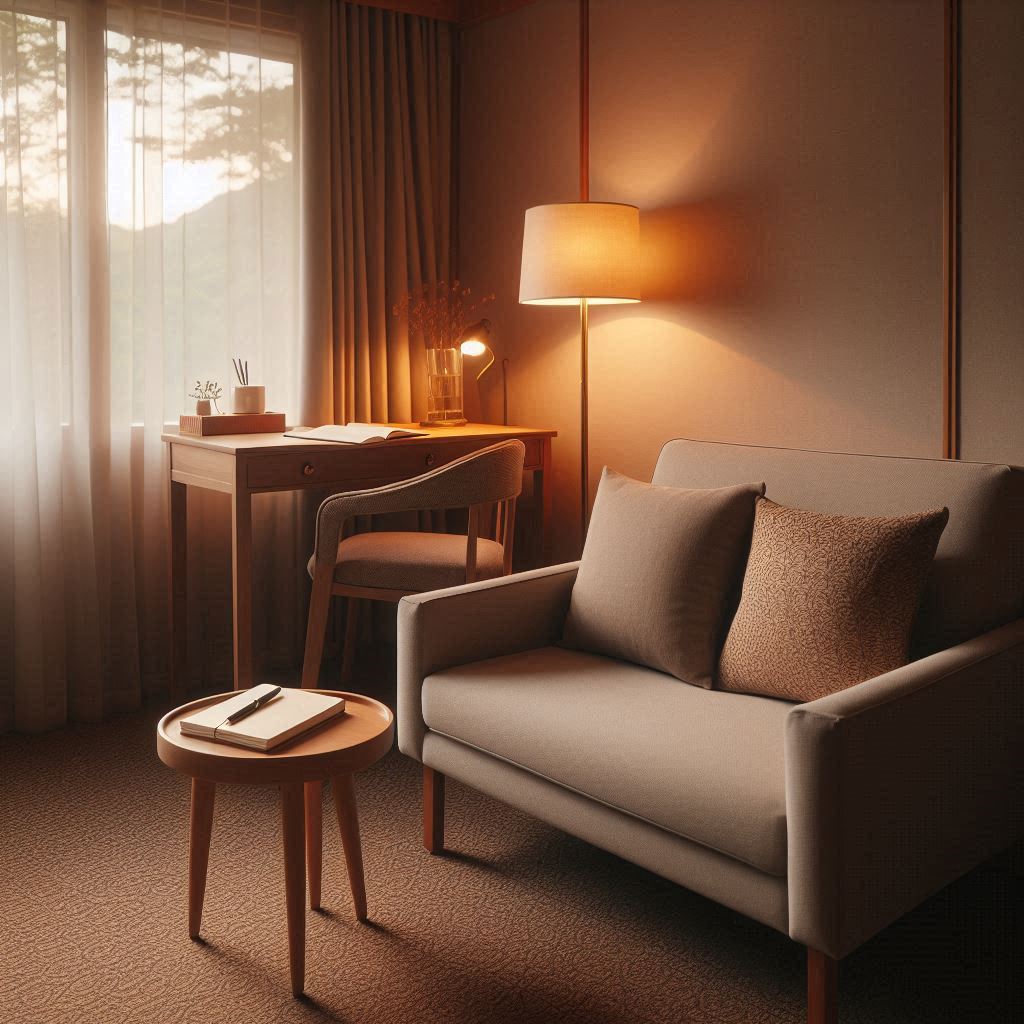 입구에서 방까지 이어지는 복도는 밝기 수준을 일정하게 맞춘 조명이 설치되어 있었고 바닥은 미끄러짐 없이 건조하게 유지되어 있었습니다. 객실 문을 열자 은은한 톤의 벽지와 낮게 설치된 간접등이 먼저 시야에 들어왔습니다. 실내 온도는 외부보다 약간 따뜻하게 조정되어 있었는데, 비를 맞으며 들어왔던 터라 체온이 빠르게 돌아오는 느낌이 있었습니다. 침구는 단단하게 정리된 상태였고 테이블 위에는 간단한 음료와 유리컵이 규칙적으로 배치되어 있어 사용법을 고민할 필요가 없었습니다. 리모컨과 객실 안내지가 한곳에 모여 있어 처음 방문한 사람도 작동법을 쉽게 파악할 수 있었습니다. 전체 동선이 단순했지만 머무는 동안 동요가 생기지 않는 구성이었습니다.